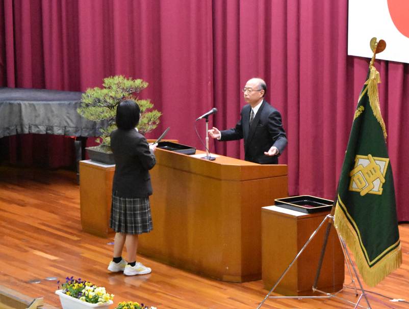大塚同窓会長をはじめ役員の皆様、本日はありがとうございました。3年生は卒業後、各自の道を歩んでいくことと思いますが、本日の入会式を経て野村高校の「同窓生」という自覚を一層深めていくことと思います。3年生の皆さんも本日を機会として、今後さらに先輩・後輩・同輩のつながりを深めていって欲しいと思います。