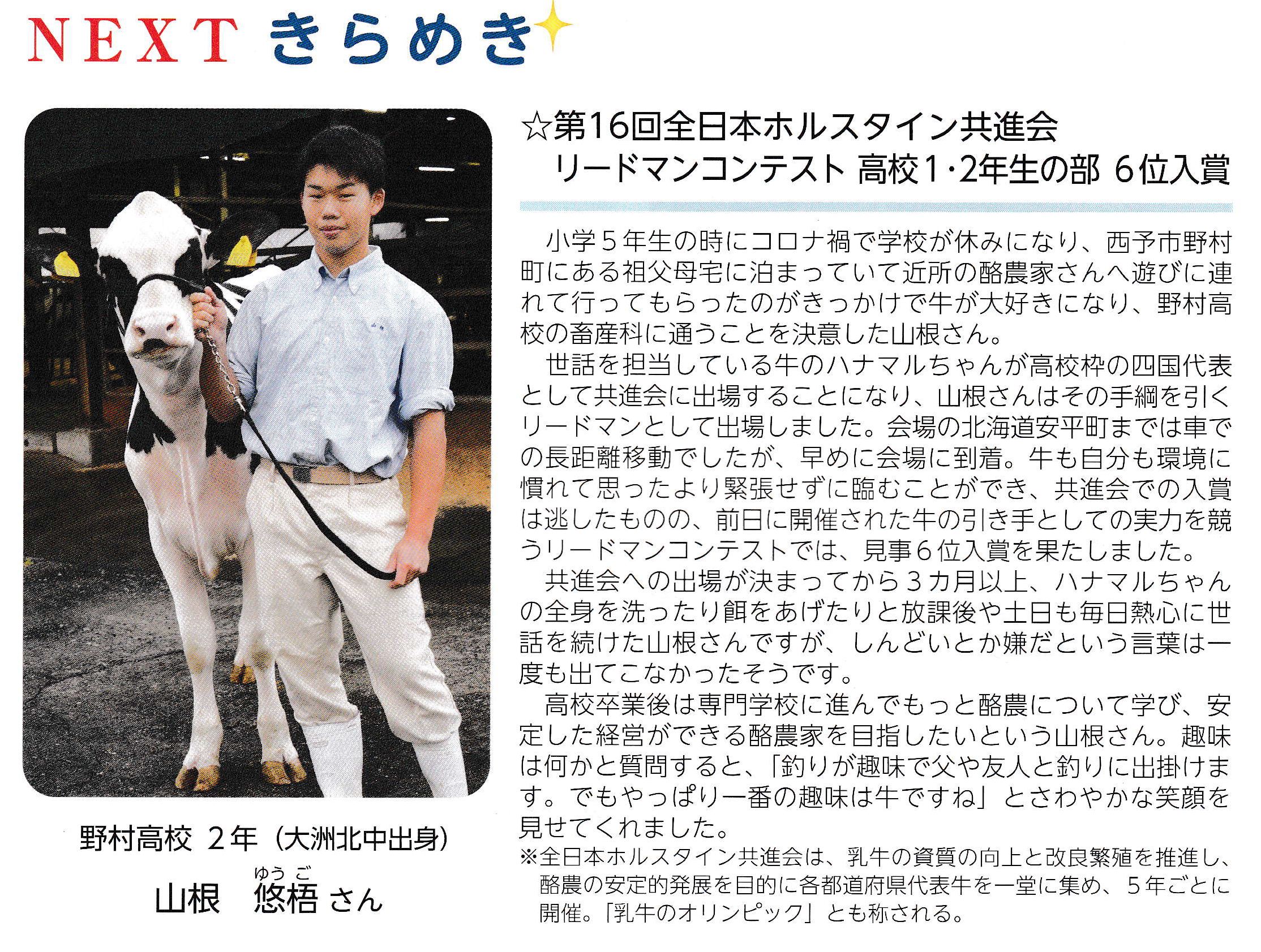 畜産科の生徒が大洲市の広報誌に取り上げられました