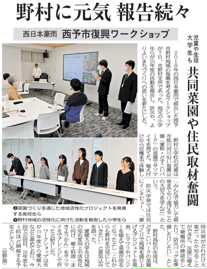 野村に元気 報告続々 西日本豪雨 西予市復興ワークショップ(令和8年2月10日付愛媛新聞 掲載許可番号d20260210-04)